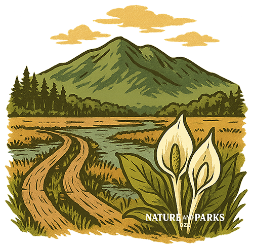 尾瀬国立公園がテーマ。燧ケ岳、木道、水芭蕉をモチーフに、広がる湿原を表しています。